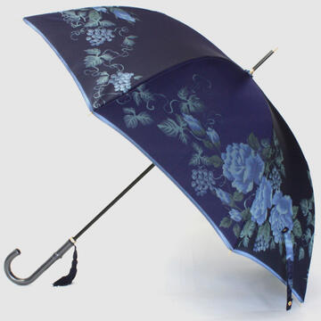 バッグ・小物・ブランド雑貨 傘 レディース雨傘 【送料無料】 高級傘甲州織ジャガード織の「バラとぶどう(紺)」が上品なレディース雨傘長です☆