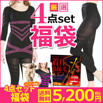 福袋 2020 矯正下着 ダイエット 着圧 レギンス オマケつき 大きいサイズ 強力 骨盤矯正 ロング丈 加圧インナー セット リンパマッサージセルライトボディ リンパマッサージセルライトスパッツ ラブリーシェイプ着圧ゲルマ裏起毛タイツ 豪華福袋4点セット!補正下着■□□
