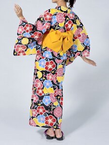 商品名新品 浴衣/作り帯 2点セット 花柄 綿100サイズフリーサイズ身長・・・154〜168cmバスト・・・79〜94cm素材綿100%カラー(浴衣)黒、赤、黄、青等(帯)山吹色コメント参考着用モデル身長:171cmおはしょりで調整ができます。
